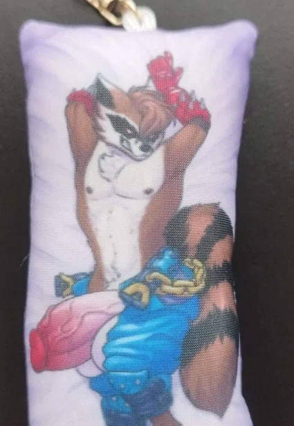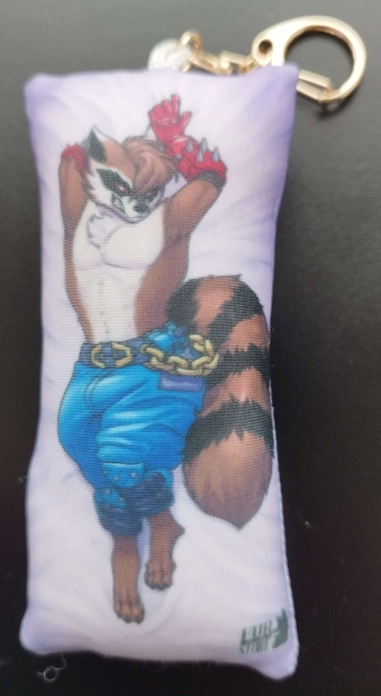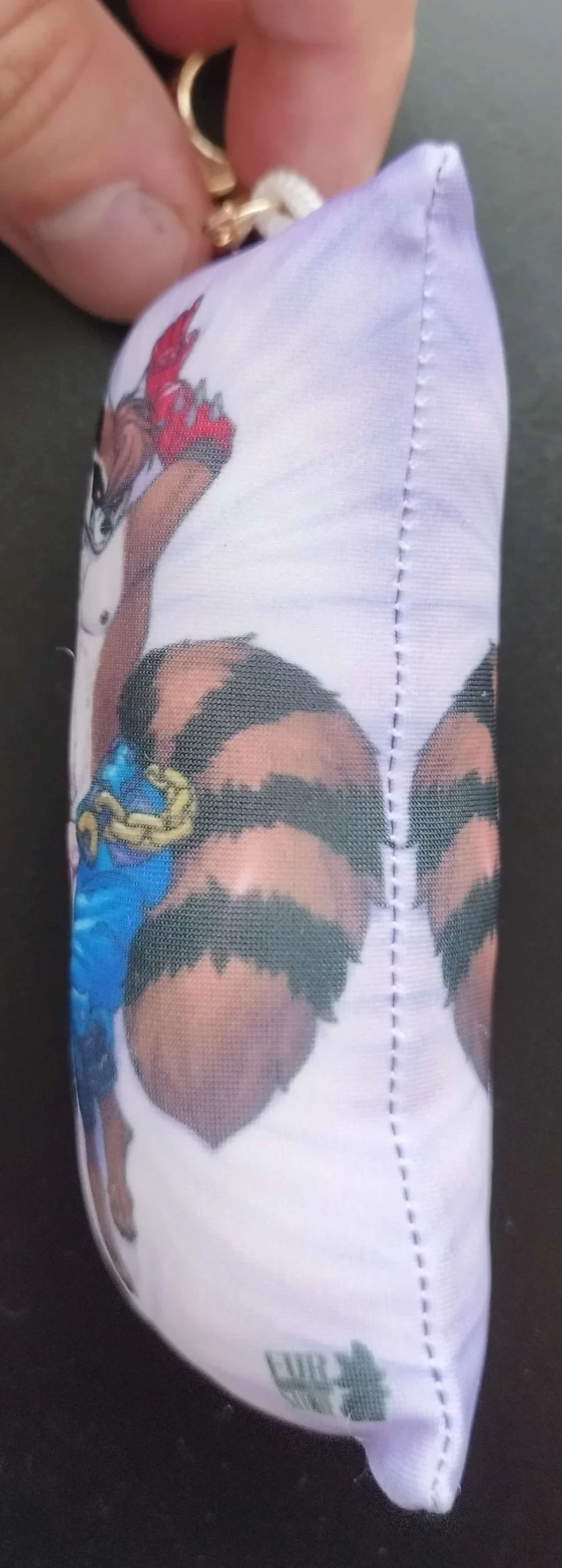 Introducing the Dakichain, a compact keychain dakimakura featuring exclusive artwork of the cunning Airborne Raccoon, crafted by the talented artist KafiroBlueElements. Available in two variants—SFW and NSFW—this mini dakimakura is the perfect way for fans to carry their favorite intergalactic trickster wherever they go.