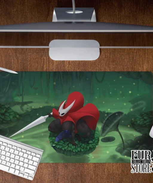 Elevate your workspace with the Daughter of Silk desk mat, a stunning 70x40cm design crafted by KafiroBlueElements. Inspired by the fierce needle-wielding warrior from Silksong adventures, this mat depicts her crouching on a leafy platform in the lush Moss Grotto, cape fluttering dramatically, with her powerful thighs and huge breasts on full display for an empowering, NSFW twist.